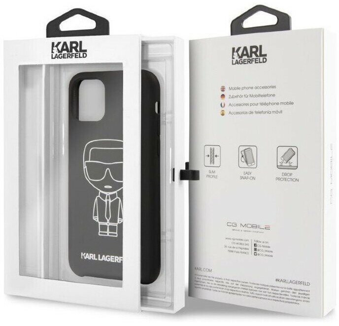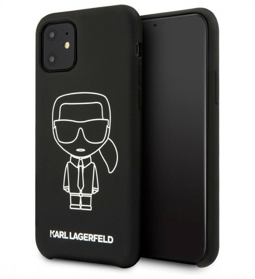 Чехол CG Mobile Karl Lagerfeld Liquid silicone Ikonik outlines Hard для iPhone 11, цвет Черный/Белый (KLHCN61SILFLWBK)