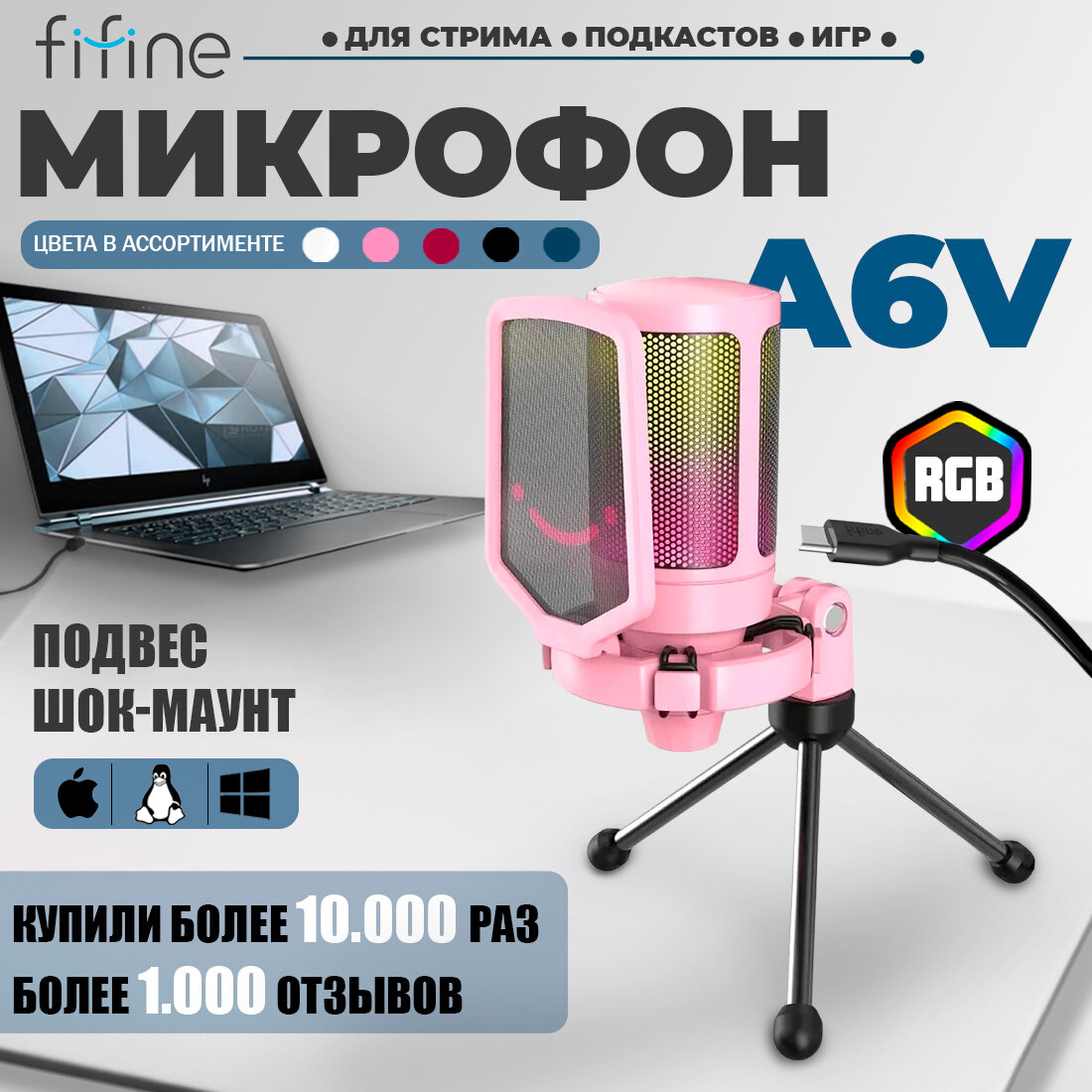Конденсаторный USB-микрофон Fifine AmpliGame A6V (компьютерный, игровой, для стримов, для конференций, Pink)