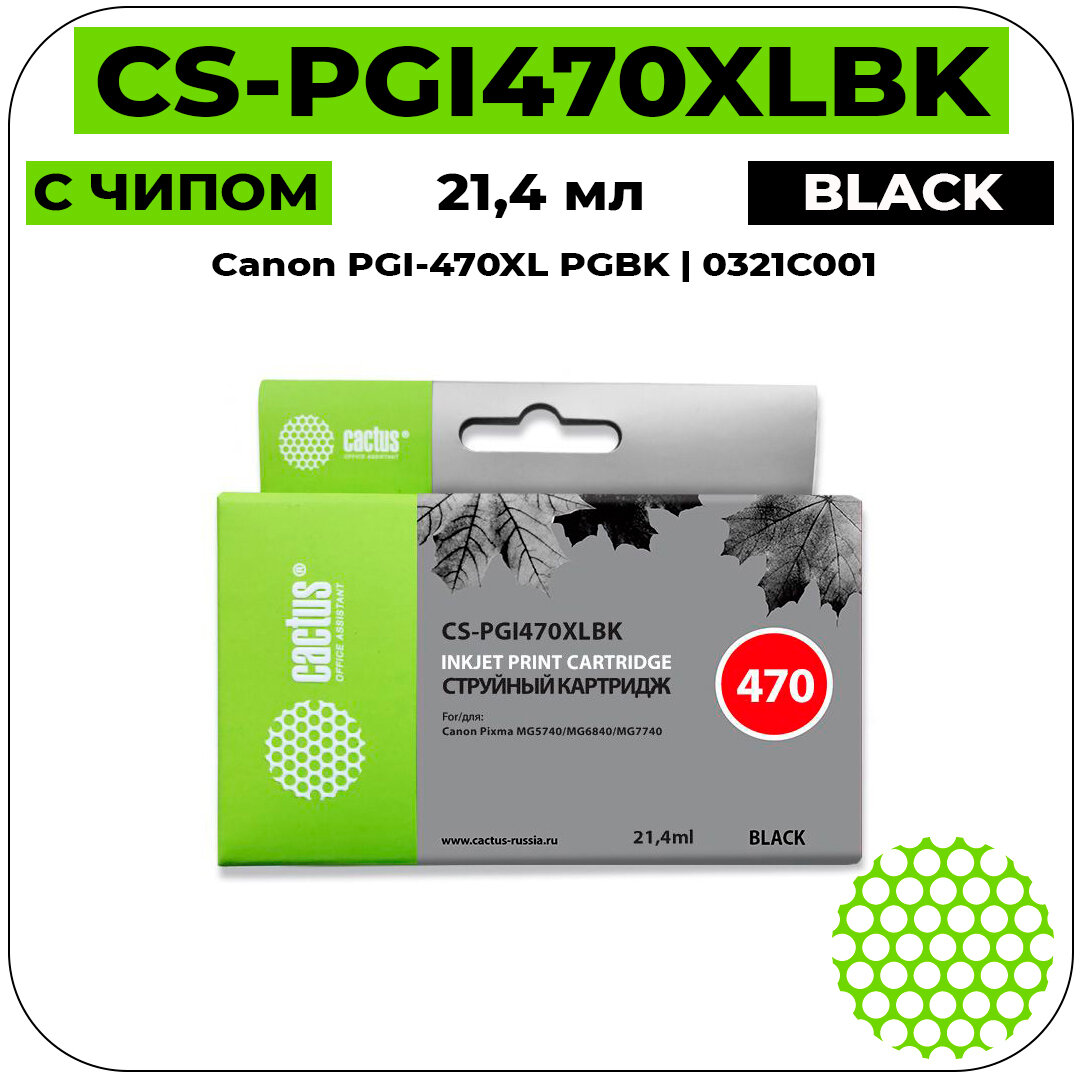 Картридж струйный CACTUS (CS-PGI470XLBK) для CANON PIXMA MG5740/6840/7740, черный пигм, ресурс 500 стр