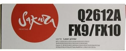 Картридж SAKURA PRINTING Q2612A/FX-9/FX-10 для HP LaserJet 1010/1012/1015/1018/1020/1022/3015/3020/3030/3050/3052/3055/M1319f/M1005,CANON IC MF4010/4012/4018/4120/4150/4270/4320d/4322d/4330d/4340/4350d/4370dn/4680 черный, 2000 к.