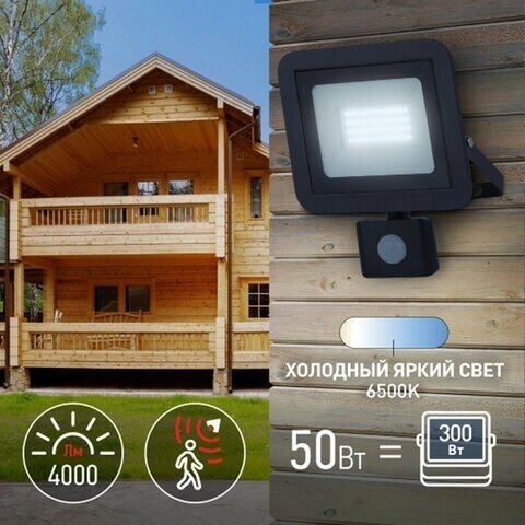 СохранитьПрожектор светодиод СДО 50Вт 6500К 4000Лм черный с внешним датчиком движения IP65 LPR-041-2-65K-050 ЭРА интересное: