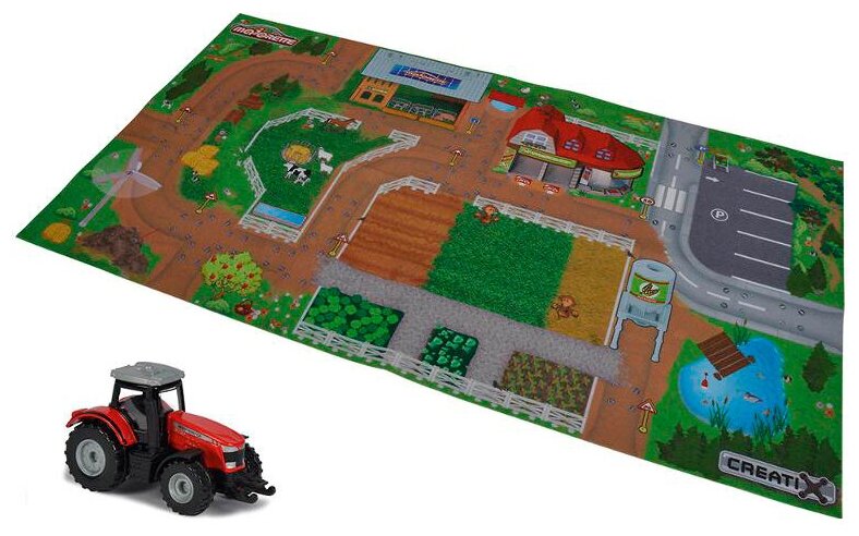 Купить Игровой коврик Creatix Farm нескользящий с машинкой Majorette 2056413