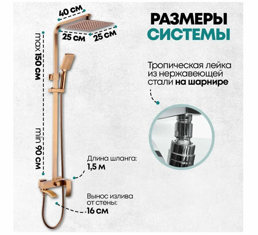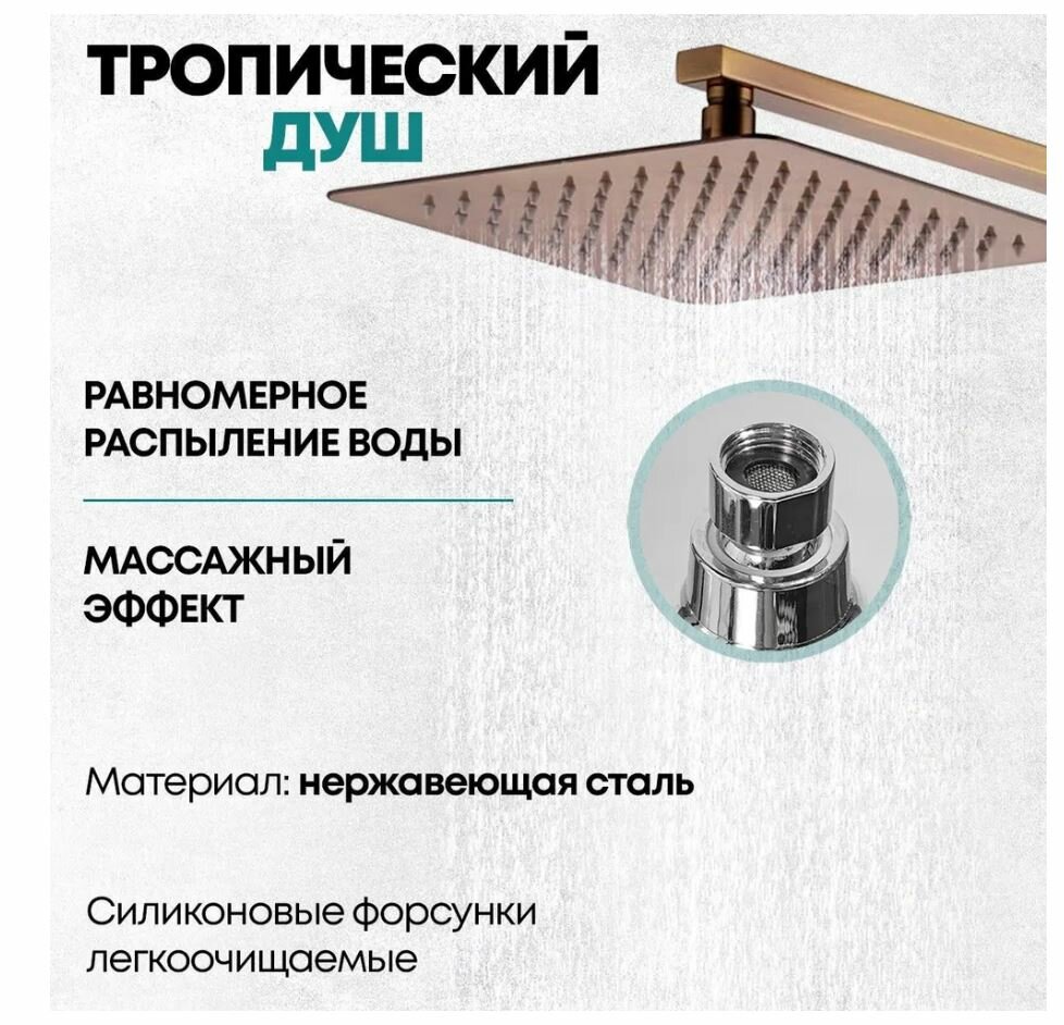 | Режимы | тропический дождь / смешанная струя / мягкая струя / массажная струя |