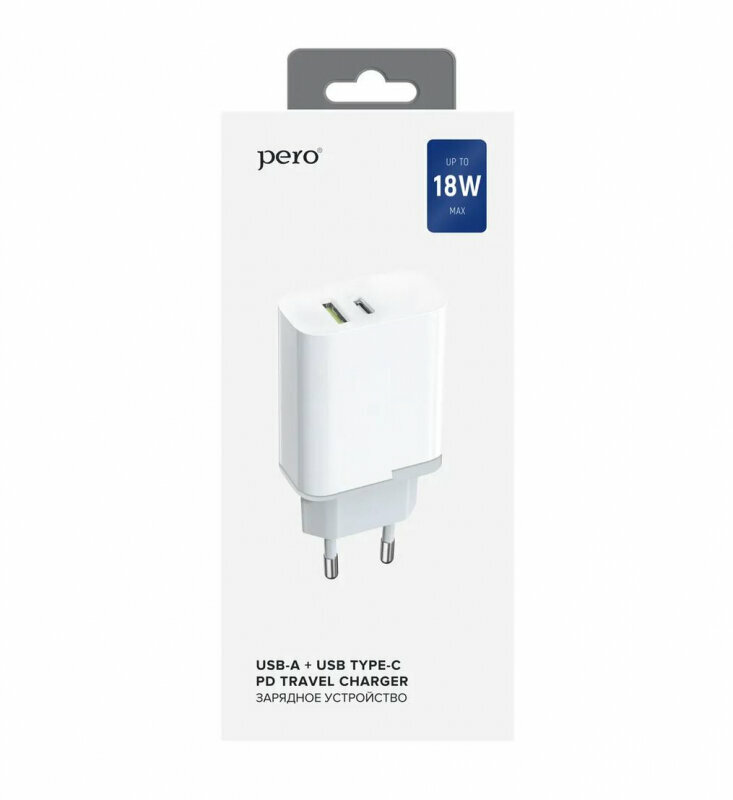Сетевое зарядное устройство PERO TC05 PD 18W + USB-A Fast Charge white (Белый)