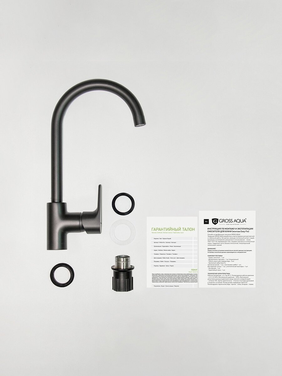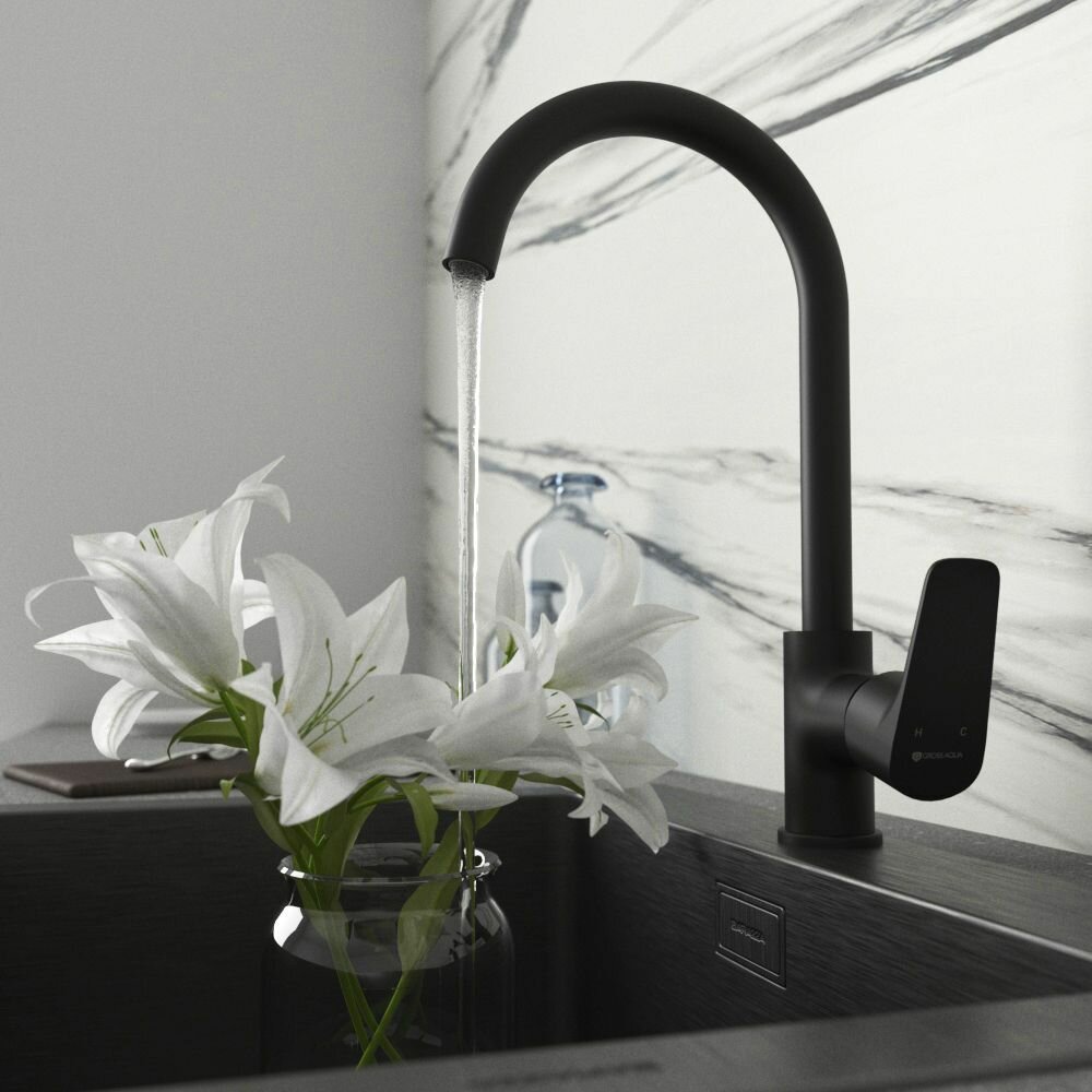 Смеситель для кухни GROSS AQUA Evo matt black 3118297MB-В02 с поворотным изливом