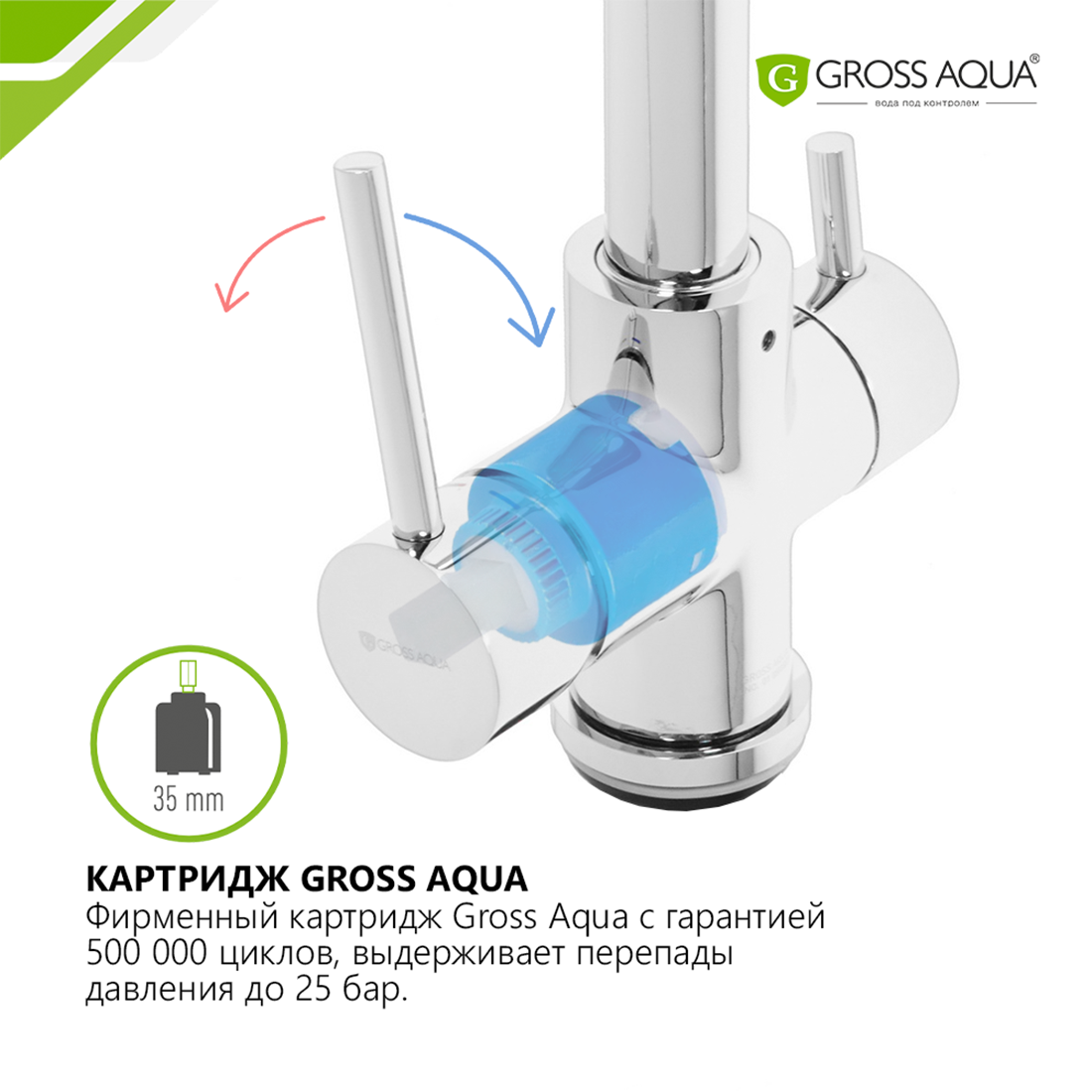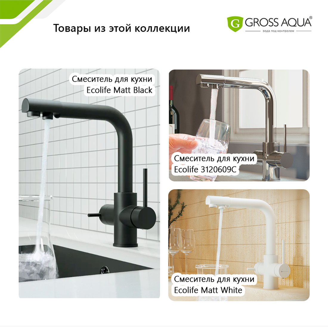 Смеситель для кухни с подключением к фильтру воды GROSS AQUA Ecolife, латунь, хром, 3120609C. интересное: