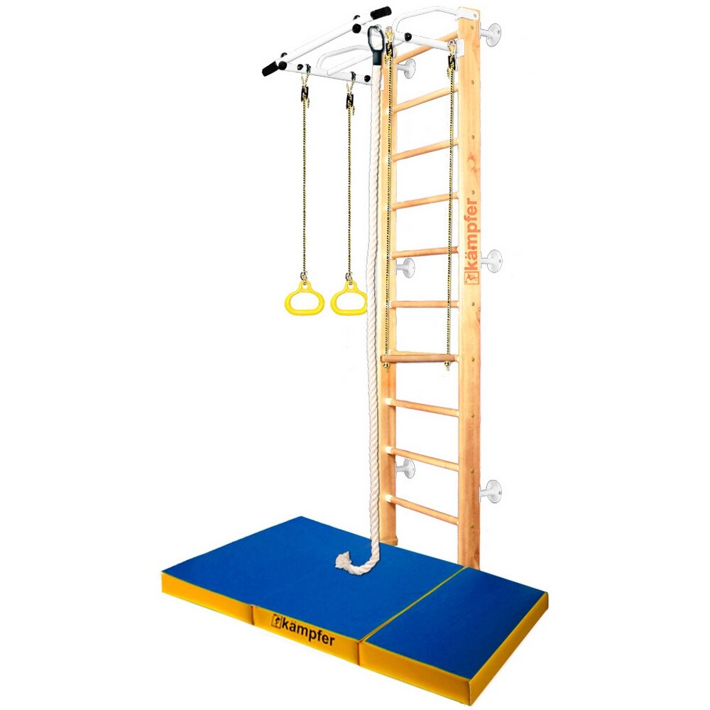 Купить Домашний спортивный комплекс Kampfer Helena Wall c матом №6 - натуральный, белый, синий-желтый