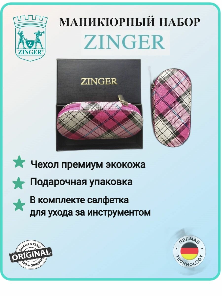 СохранитьМаникюрный набор на молнии, ZINGER, MS-7104, 6 предметов, чехол клетка розовая интересное: