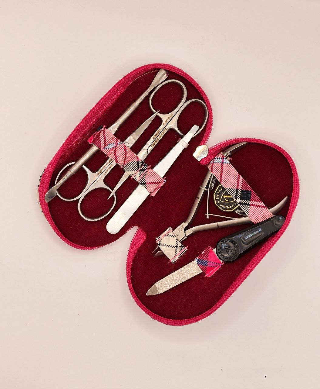 Купить Маникюрный набор на молнии, ZINGER, MS-7104, 6 предметов, чехол клетка розовая
