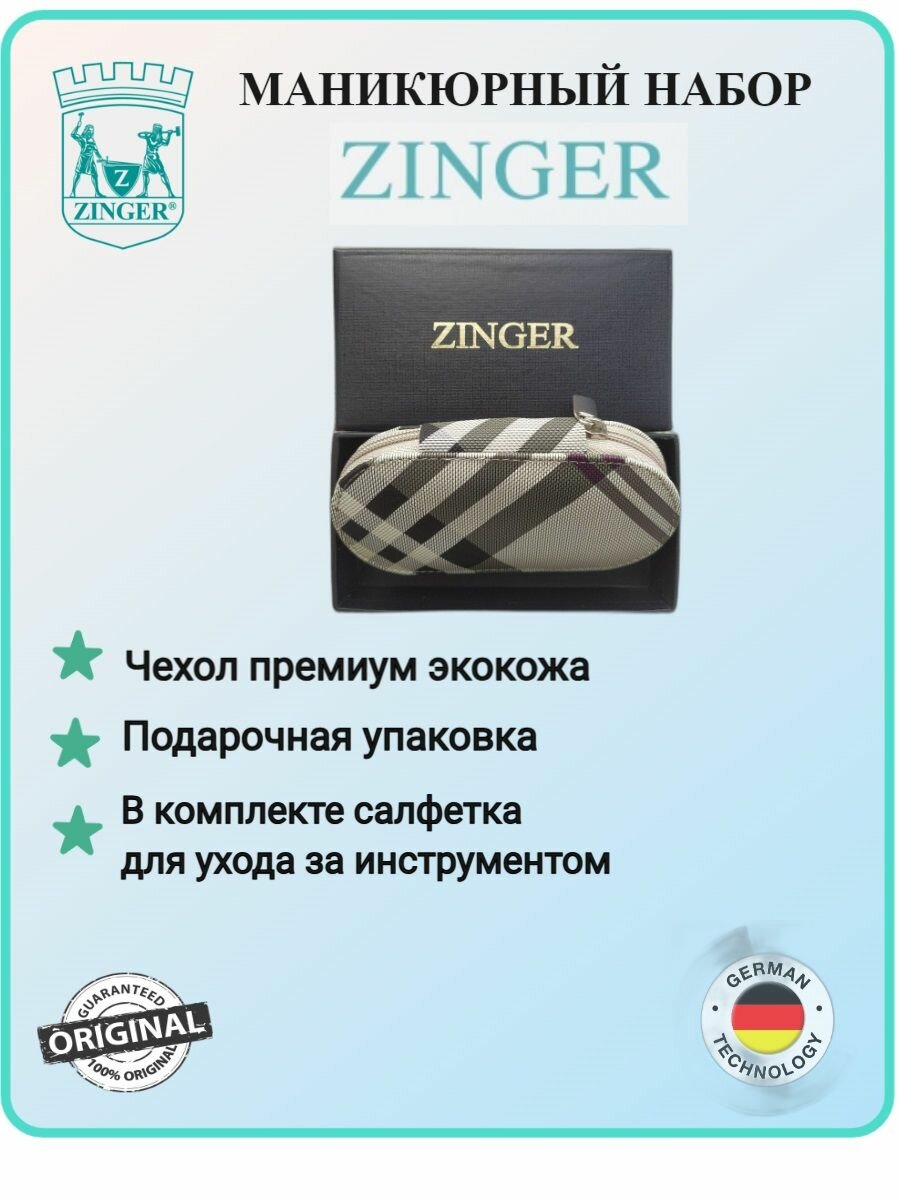 Маникюрный набор ZINGER на молнии MS-7104, 6 предметов, чехол клетка коричневая
