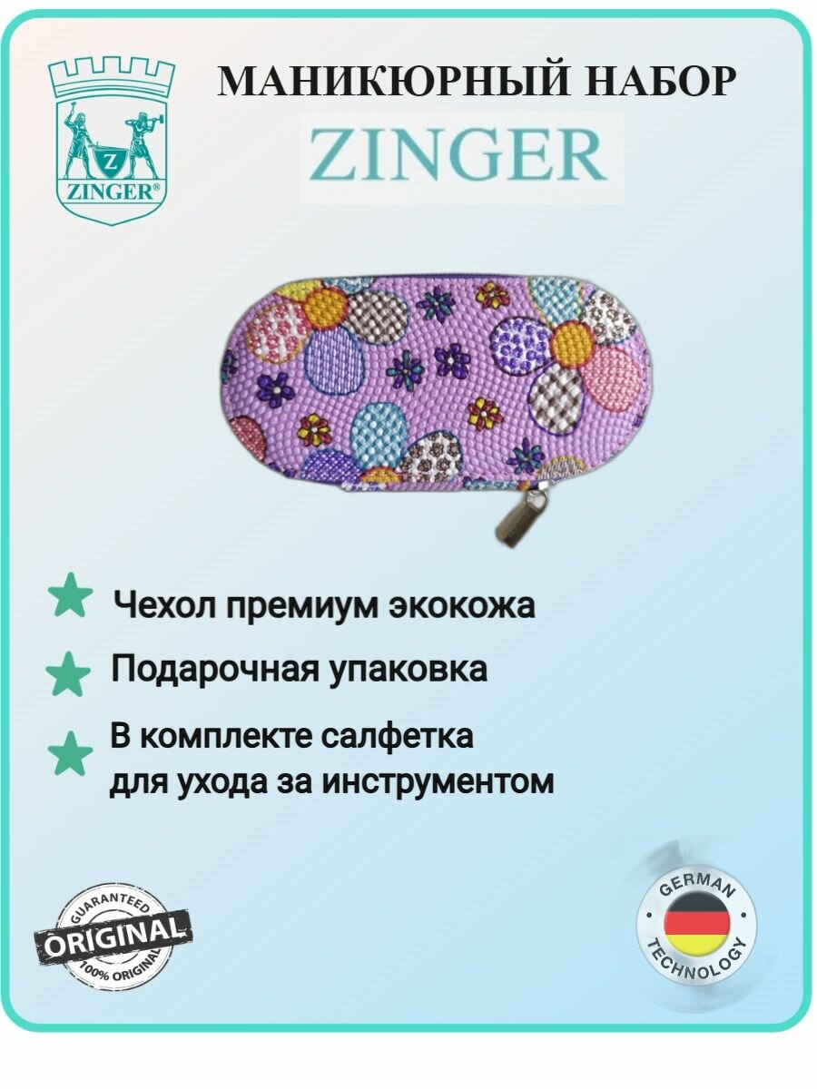 Маникюрный набор ZINGER на молнии MS-7104, 6 предметов, чехол фиолетовые цветы в золоте