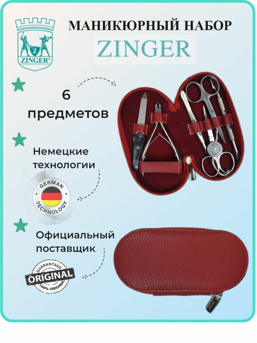Купить Маникюрный набор на молнии, ZINGER, MS-7104, 6 предметов, чехол алый