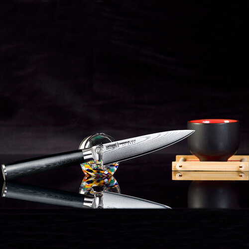 SD-0220КВЧП Набор из 3-х ножей в подарочной коробке SD-0220 DAMASCUS Samura и подставка универсальная квадратная черная