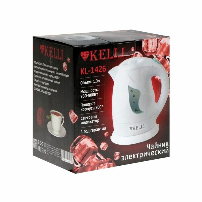 Чайник электрический Kelli KL-1426 / 1 л / 2000 Вт / пластик / белый