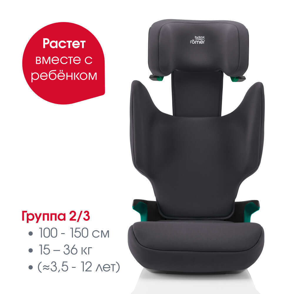 Автокресло детское Britax Roemer ADVENTURE PLUS 2 Space Black для детей от 3,5 до 12 лет, ростом 100-150 см, весом 15 - 36 кг, черный