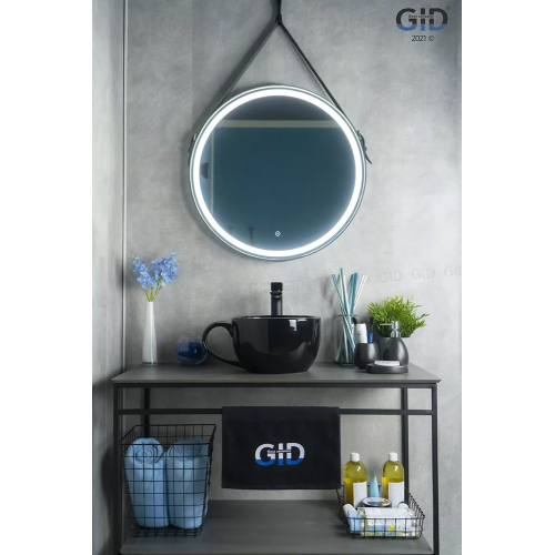 Зеркало в золотой раме D90 для ванной с тёплой подсветкой, сенсор с диммером, класс защиты IP44 Max Mirrors