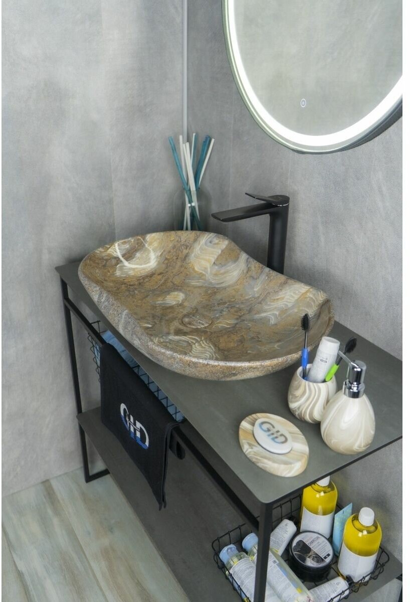 Накладная раковина 66.5x41х12см Gid Mnc503 под камень, с донным клапаном