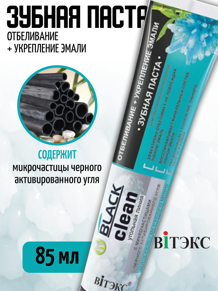 Зубная паста Витэкс Black clean отбеливание+укрепление эмали с микрочастицами черного активированного угля и минералами Мертвого моря, 85 г