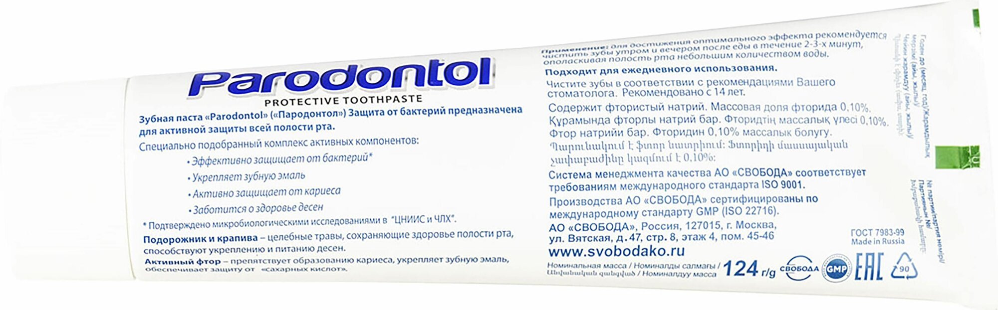Свобода (Svoboda) Зубная паста Пародонтол защита от бактерий 124 г