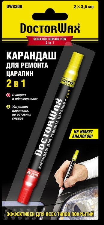 Doctor Wax карандаш для кузова для закрашивания царапин 2 в 1