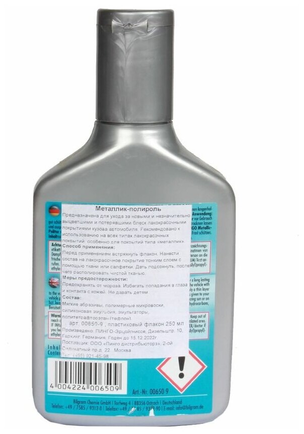PINGO 006509 Полироль для краски "металлик" с тефлоном 250мл 1шт интересное: