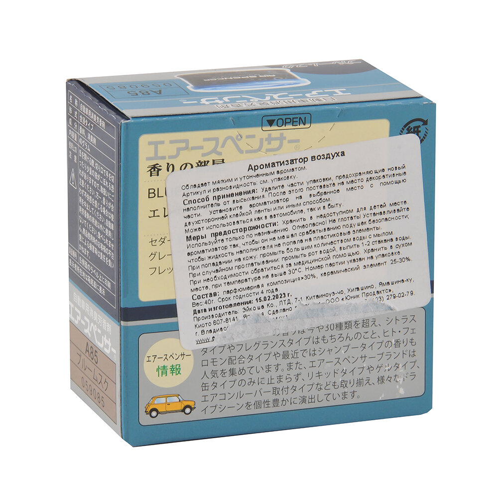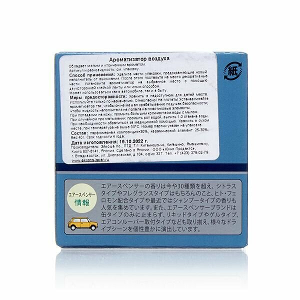 EIKOSHA ароматизатор для машины и дома меловой Air Spenser - MARINE BLUE SQUASH / Свежесть океана, автомобильный парфюм, арт. A106