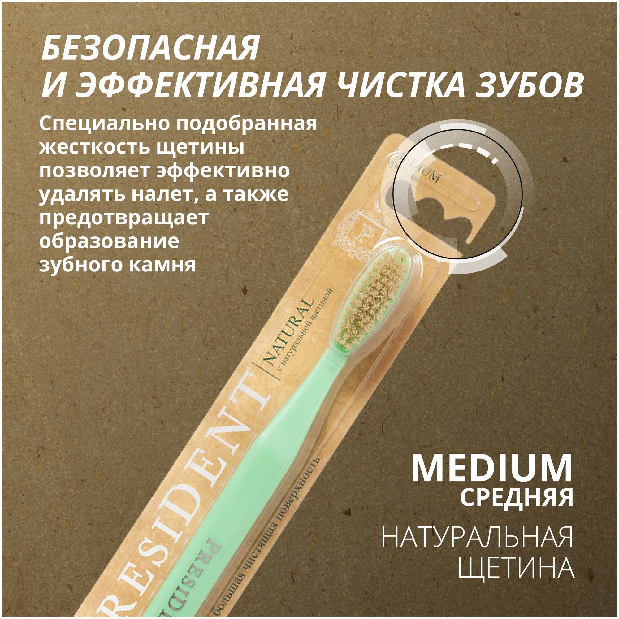 Зубная щетка PresiDENT Natural с натуральной щетиной средняя интересное: