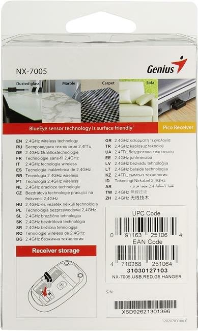 Genius NX-7005 красная (red, G5 Hanger), 2.4GHz wireless, BlueEye 1200 dpi