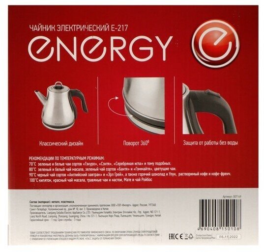 Ниже Вы можете прочитать отзывы на Чайник электрический Energy E-217, 1,2 л, серебро, ознакомится с подробными характеристиками, посмотреть интересные обзоры и фотографии на Чайник электрический Energy E-217, 1,2 л, серебро.