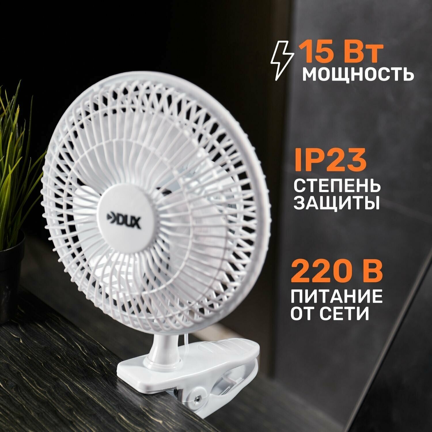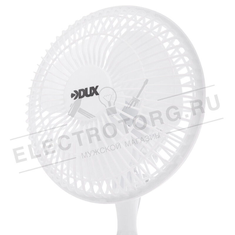 Вентилятор настольный DUX DX-614 60-0211 прищепка, 15 Вт, 15 см лопасти, 19 см решетка, белый