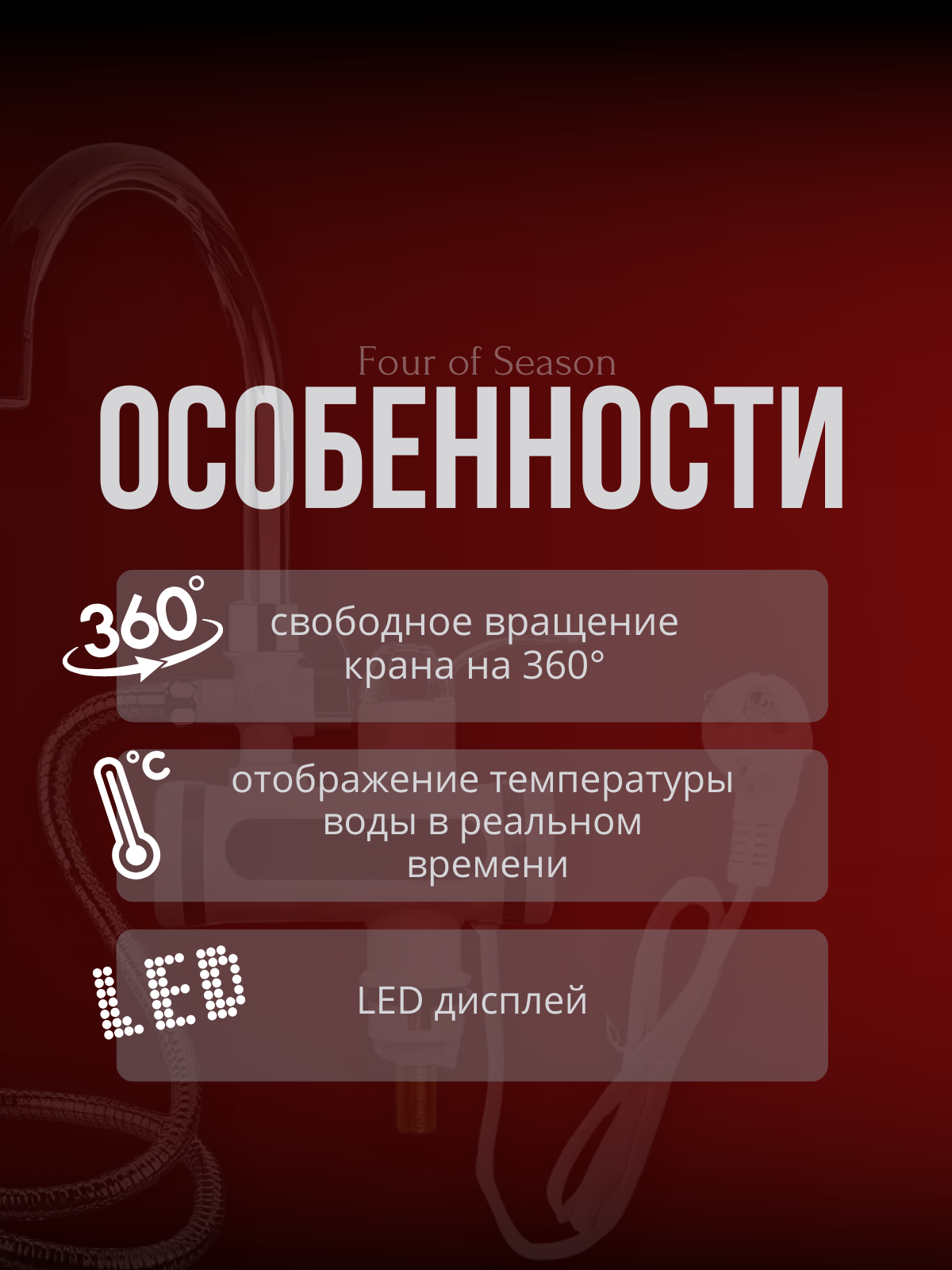 | Особенности | дисплей / душевая лейка в комплекте / кран в комплекте |
