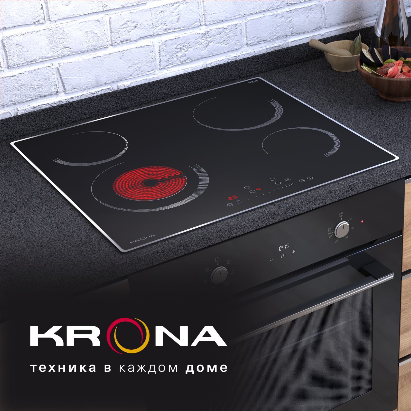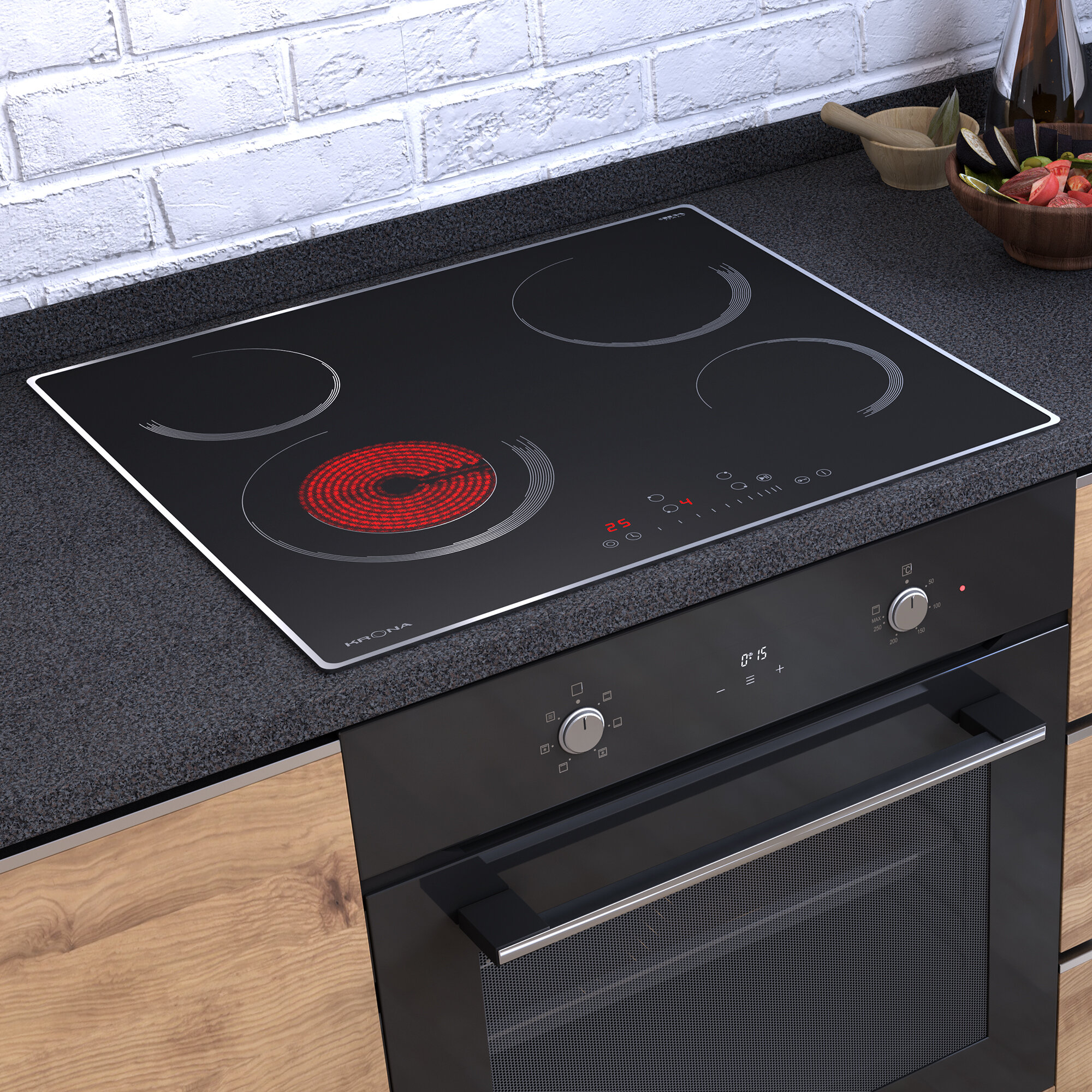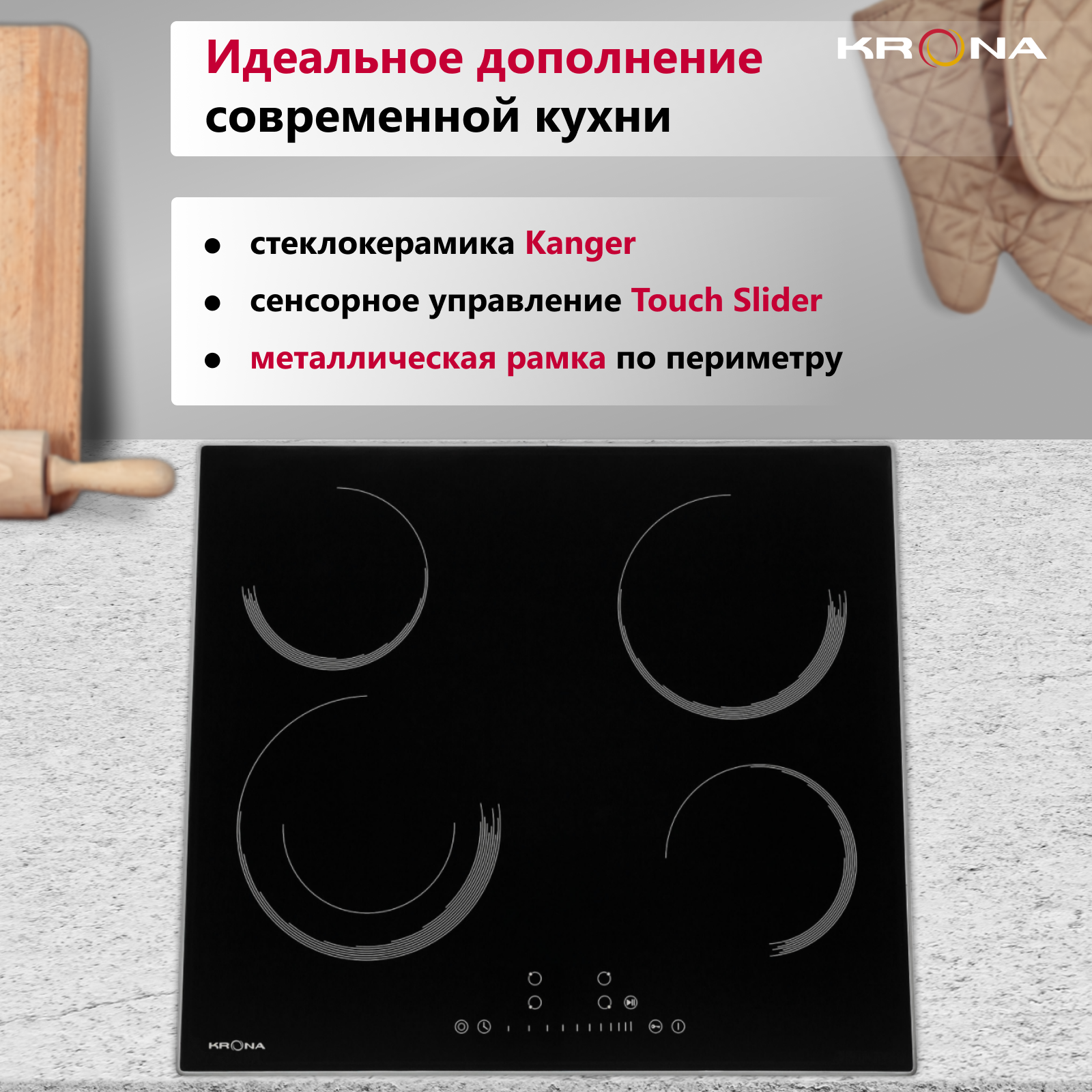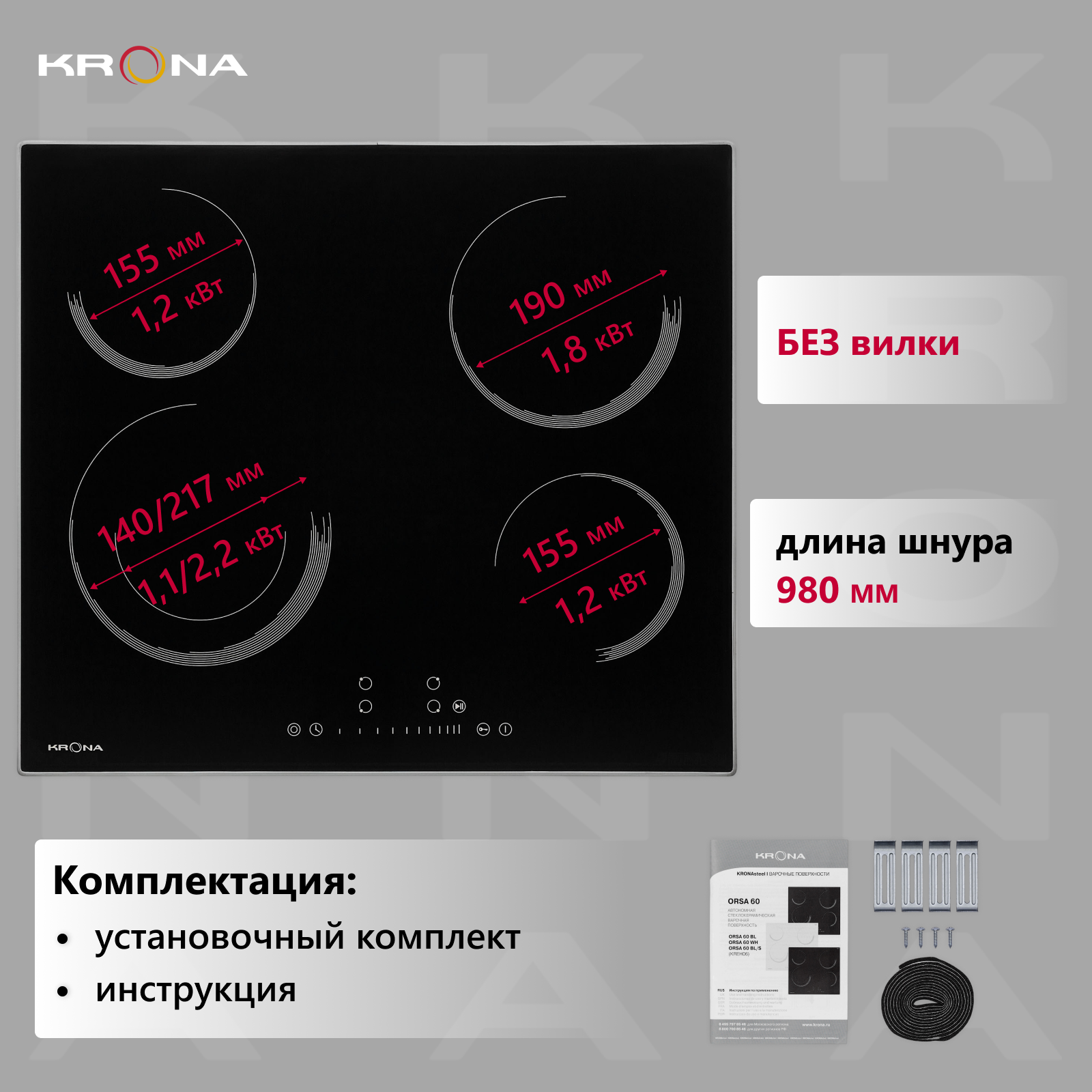 Купить Варочная поверхность KRONA ORSA 60 BL/S встраиваемая электрическая черная с металлической рамкой