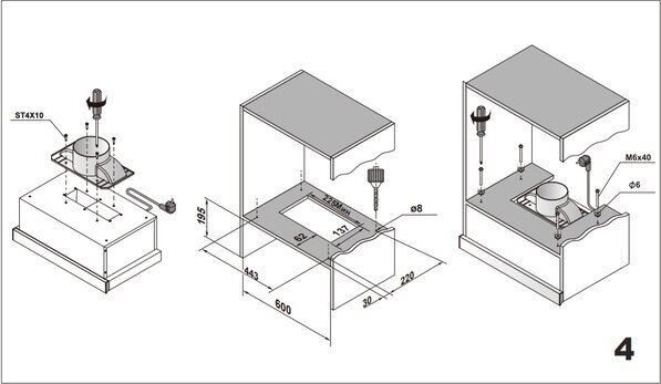 | Минусы: | вытяжка работает шумно даже при скорости I |