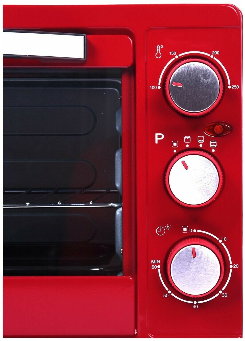 Мини-печь Oursson "MO2325/RD", красная, 23л, таймер, внутренняя подсветка