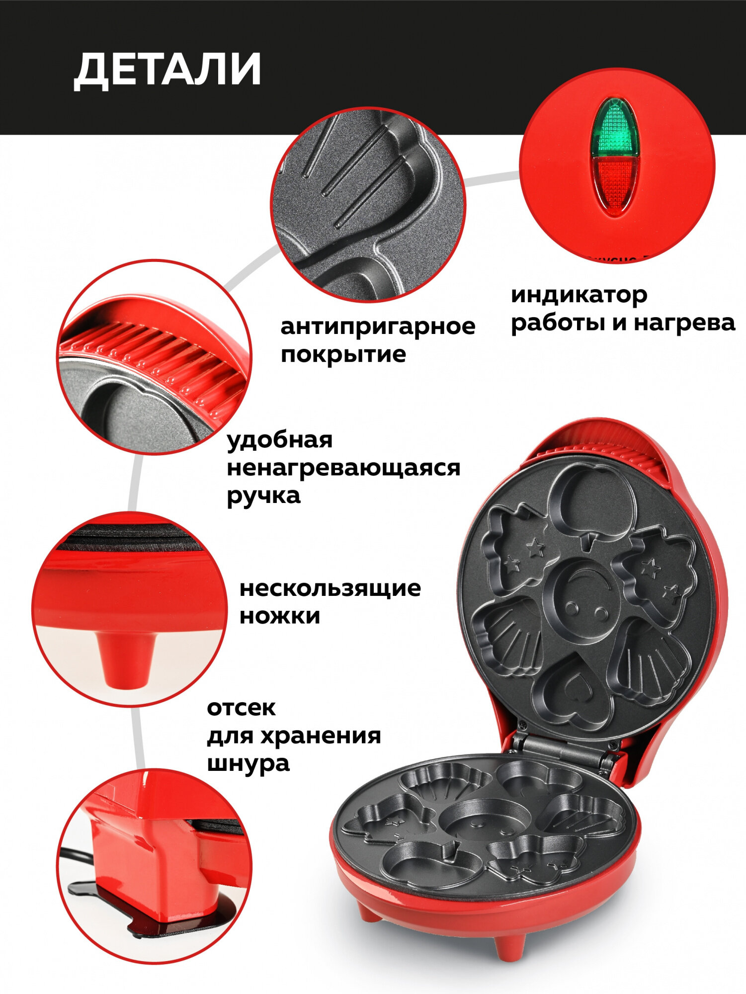 Компактная, быстро прогревается, для детей интересные фигурки выпечки.