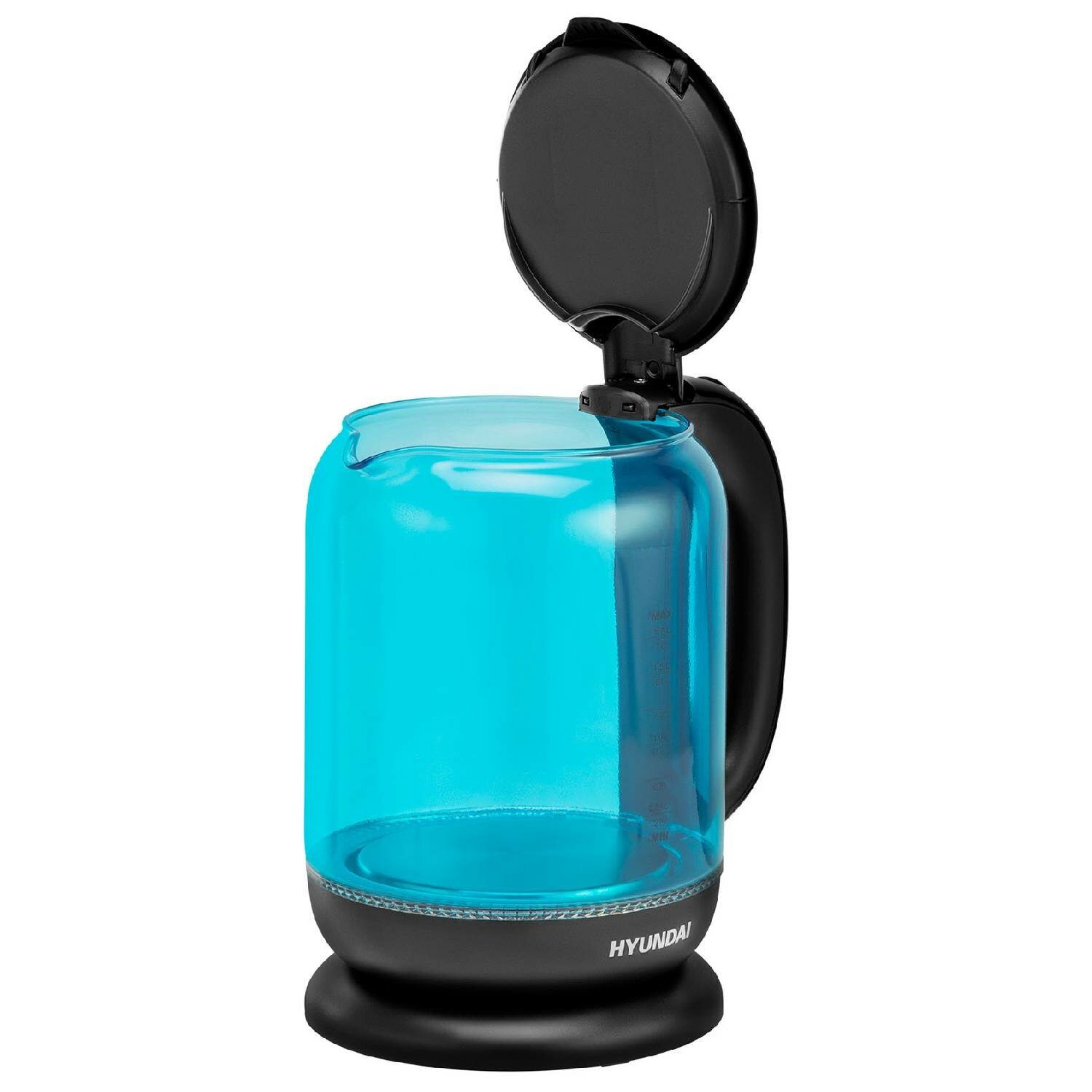 Стеклянный чайник электрический Hyundai HYK-G2806, 1,8 л, стекло голубое, пластик черный