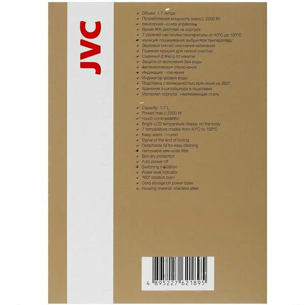 Чайник электрический JVC 1.7 л с дисплеем, 7 уровней температуры нагрева 40-100 градусов, подставка с вращением на 360 градусов, 2200 Вт