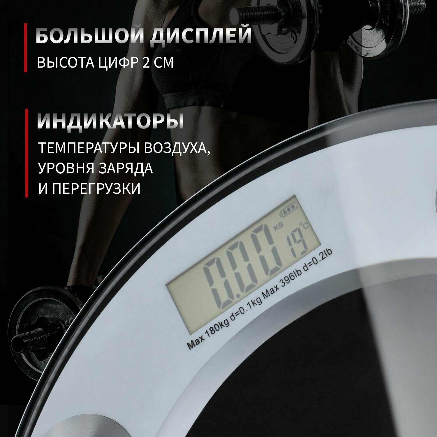 Напольные электронные весы Rexant с измеренем температуры воздуха и дисплеем(до 180 кг), круглая фор .