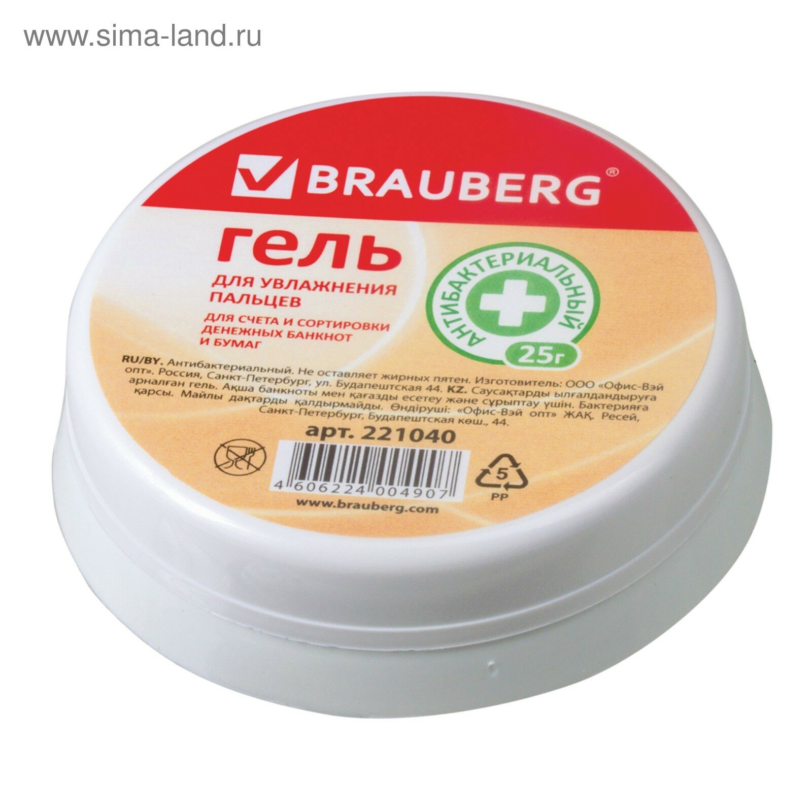 Гель для увлажнения пальцев антибактериальный BRAUBERG, 25 г, Россия, 221040, 221040
