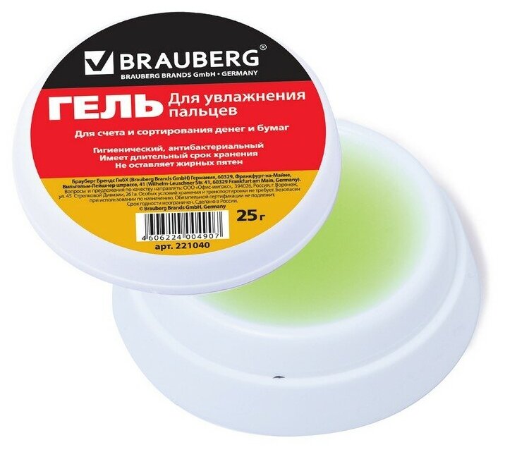 Гель для увлажнения пальцев антибактериальный BRAUBERG, 25 г, Россия, 221040, 221040