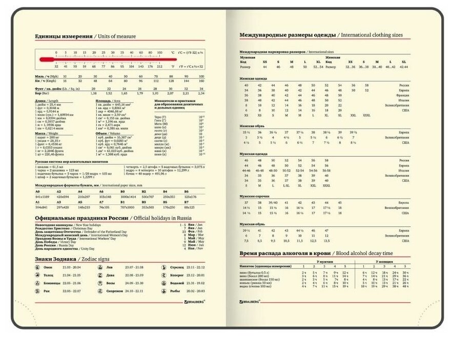 | Особенности | календарь / перфорация уголков / справочная информация / ляссе / закругленные углы |
