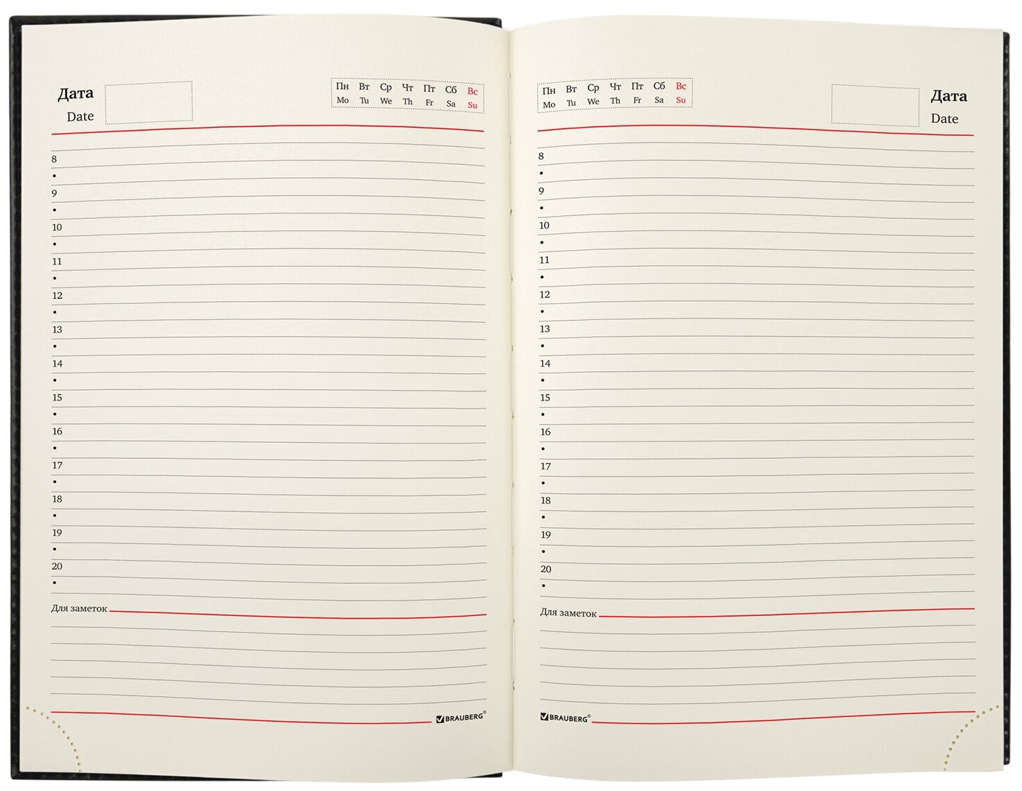 Ежедневник Brauberg Flame, недатированный, А5, 138х213 мм, под кожу, 160 л., черный, черный срез