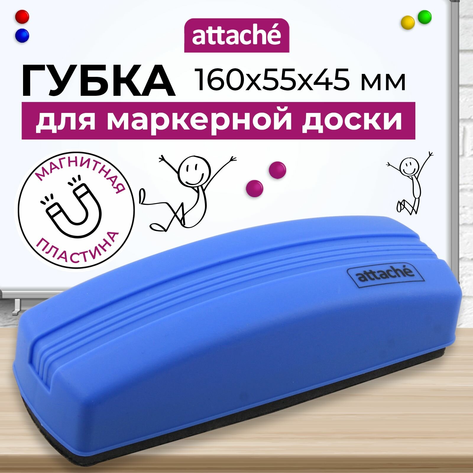 Губка-стиратель для магнитно-маркерных досок,Attache,магнитн,(55x160мм),син, 1 шт.