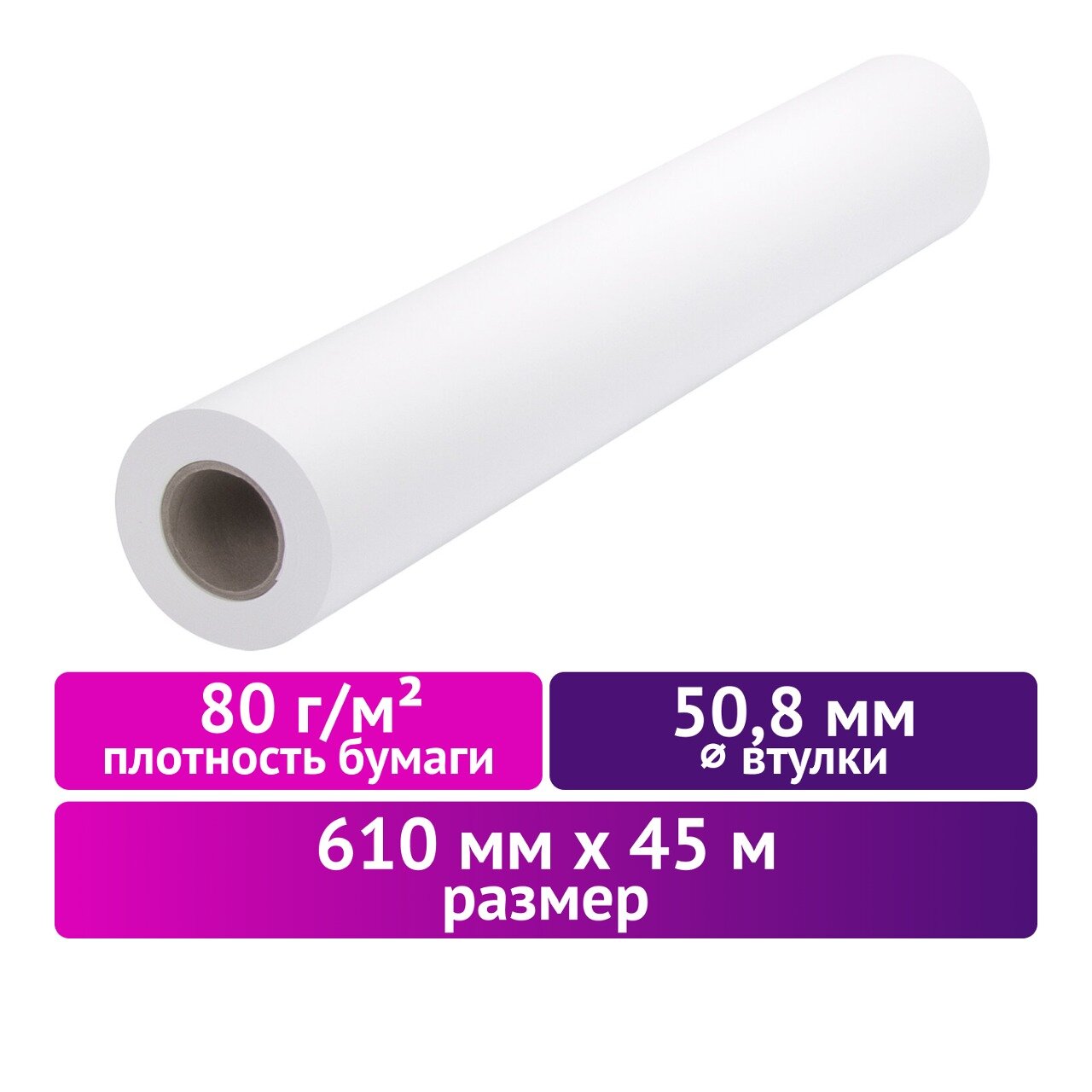 Рулон для плоттера 610 мм х 45 м х втулка 50,8 мм, 80 г/м2, белизна CIE 146%, BRAUBERG, 114181