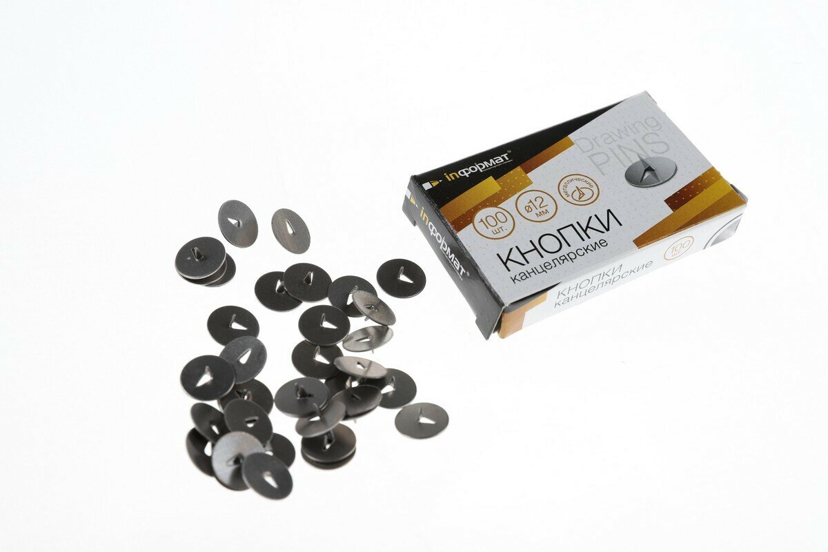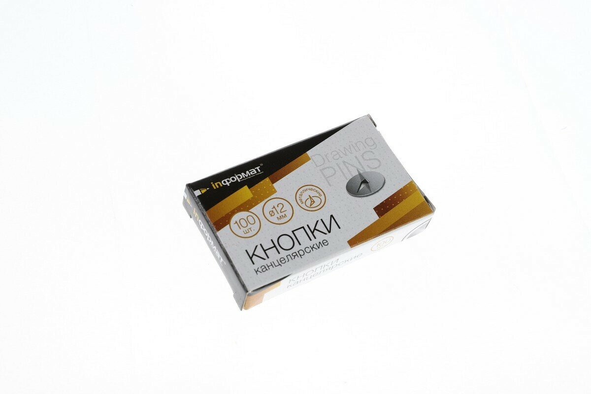 Кнопки канцелярские inформат, d=12мм, металлические, 100шт.