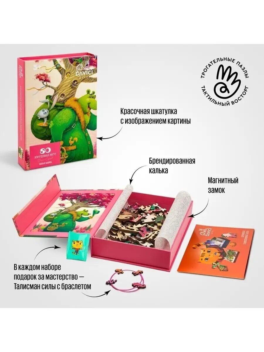 DaVICI Деревянный пазл Зеленый медведь интересное: