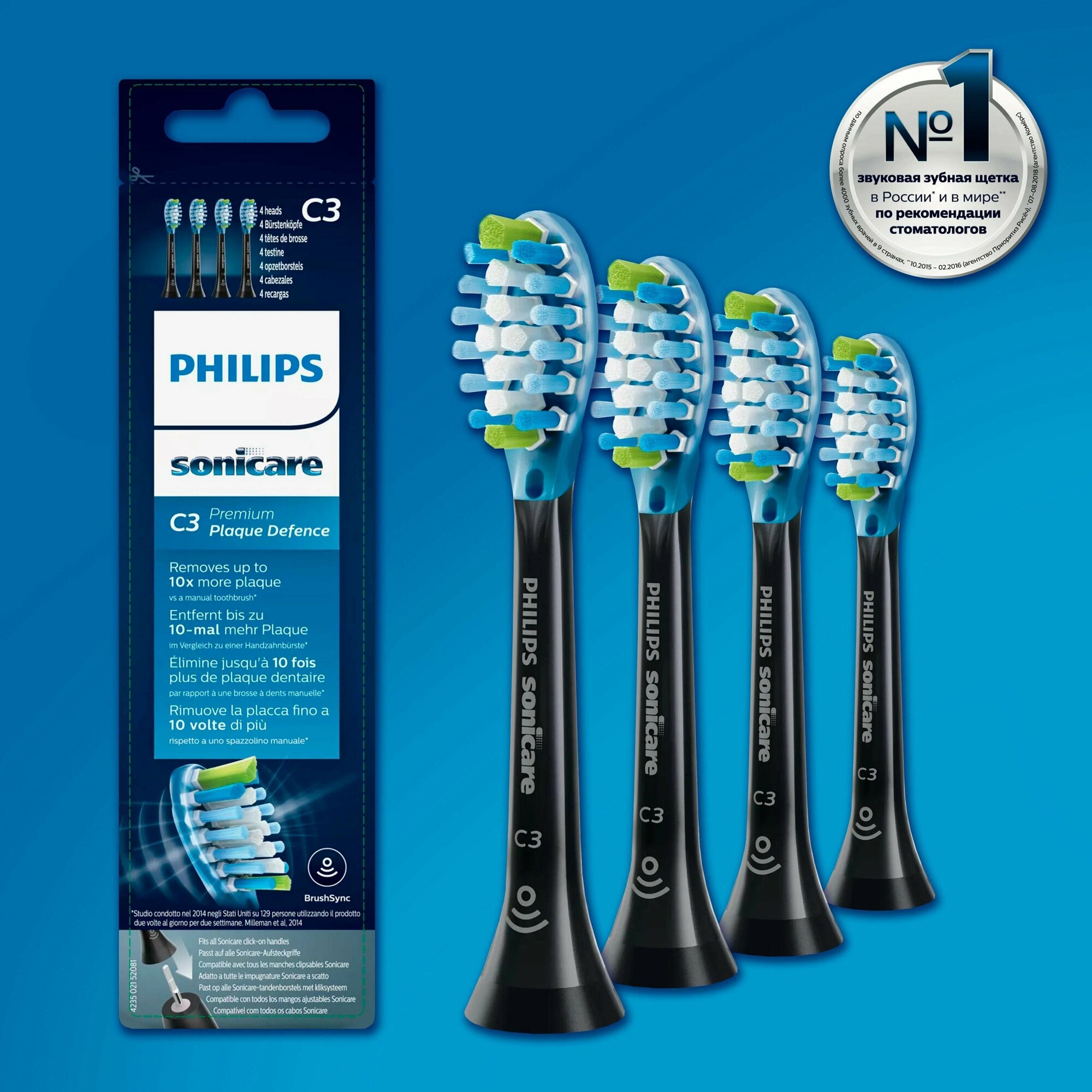 PHILIPS Набор насадок Philips Sonicare C3 Premium Plaque Defence HX9044/33, чёрный, 4 шт