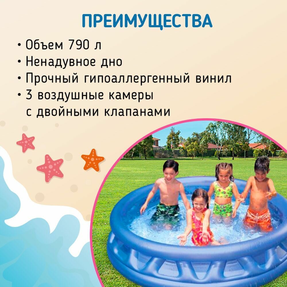 Детский надувной круглый бассейн 188x46 см, 790 л, Intex с мягкими стенками, от 3 лет, арт. 58431