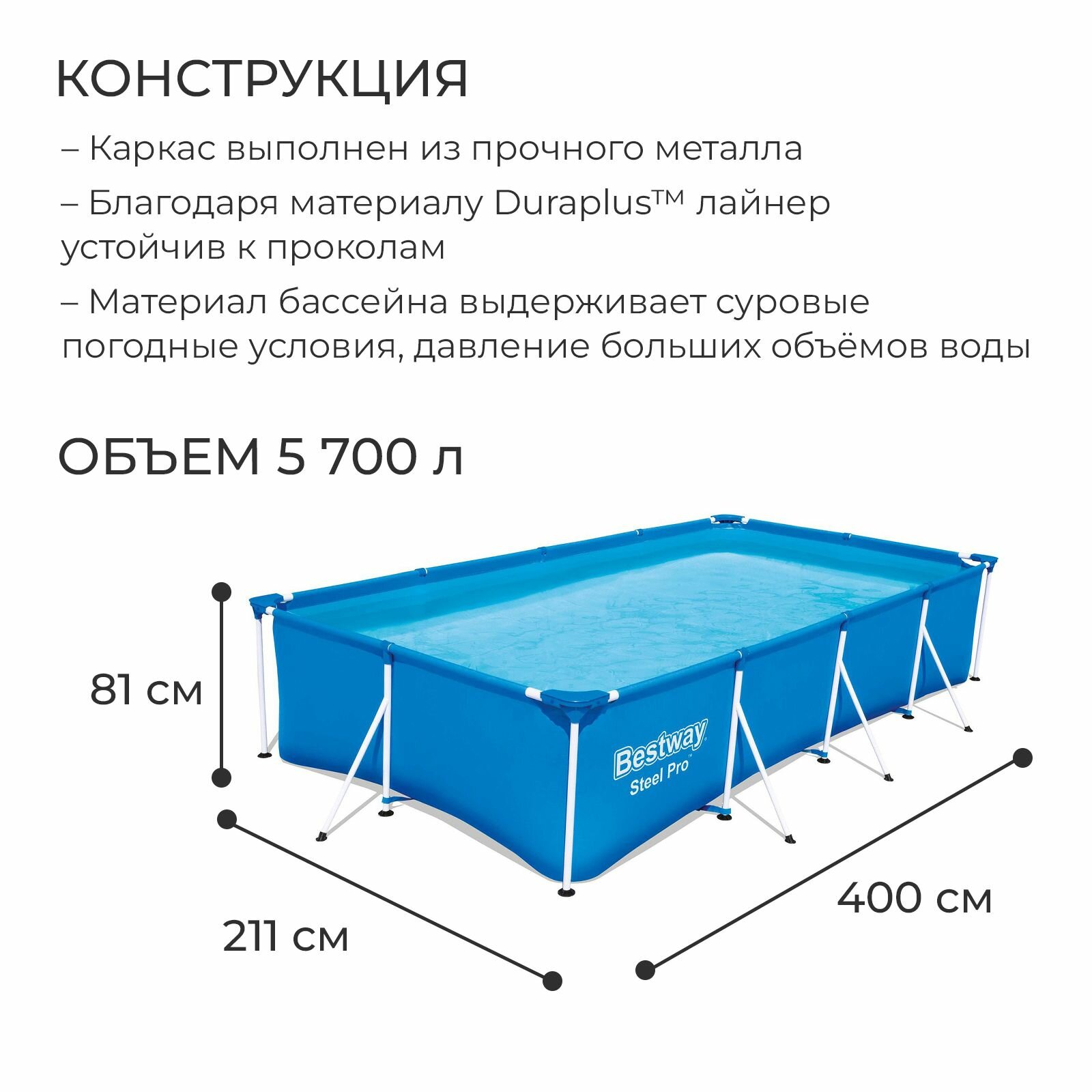СохранитьБассейн каркасный Bestway, 400х211х81 см, Steel Pro, 56405, 5700 л интересное: