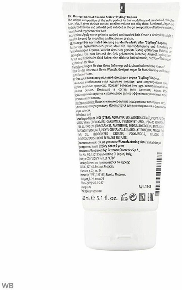 1248 Kapous Professional Styling Гель для волос нормальной фиксации "Gel Normal" серии "Styling"150 мл